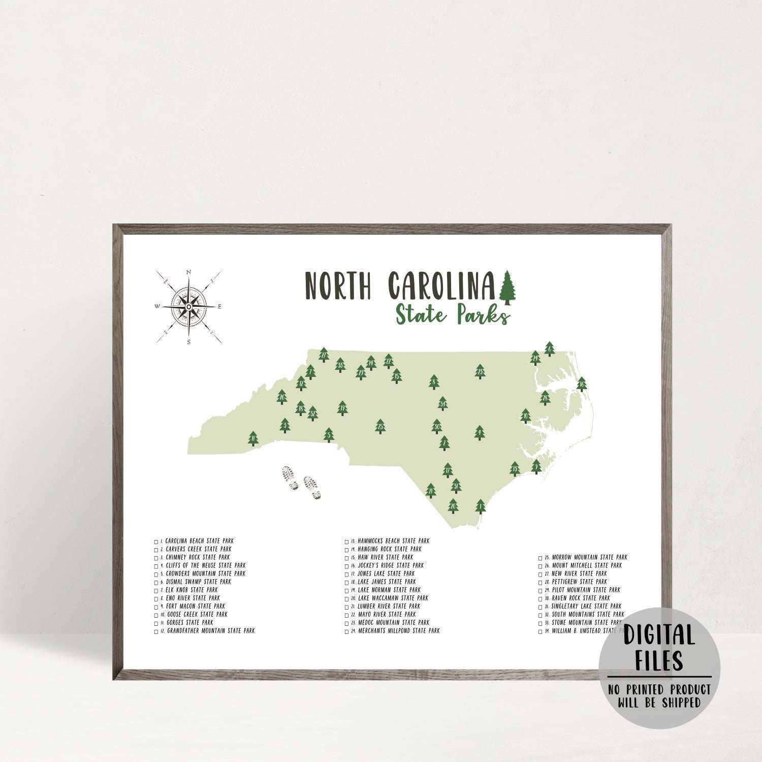 North Carolina State Parks Map | North Carolina Map | Gift For