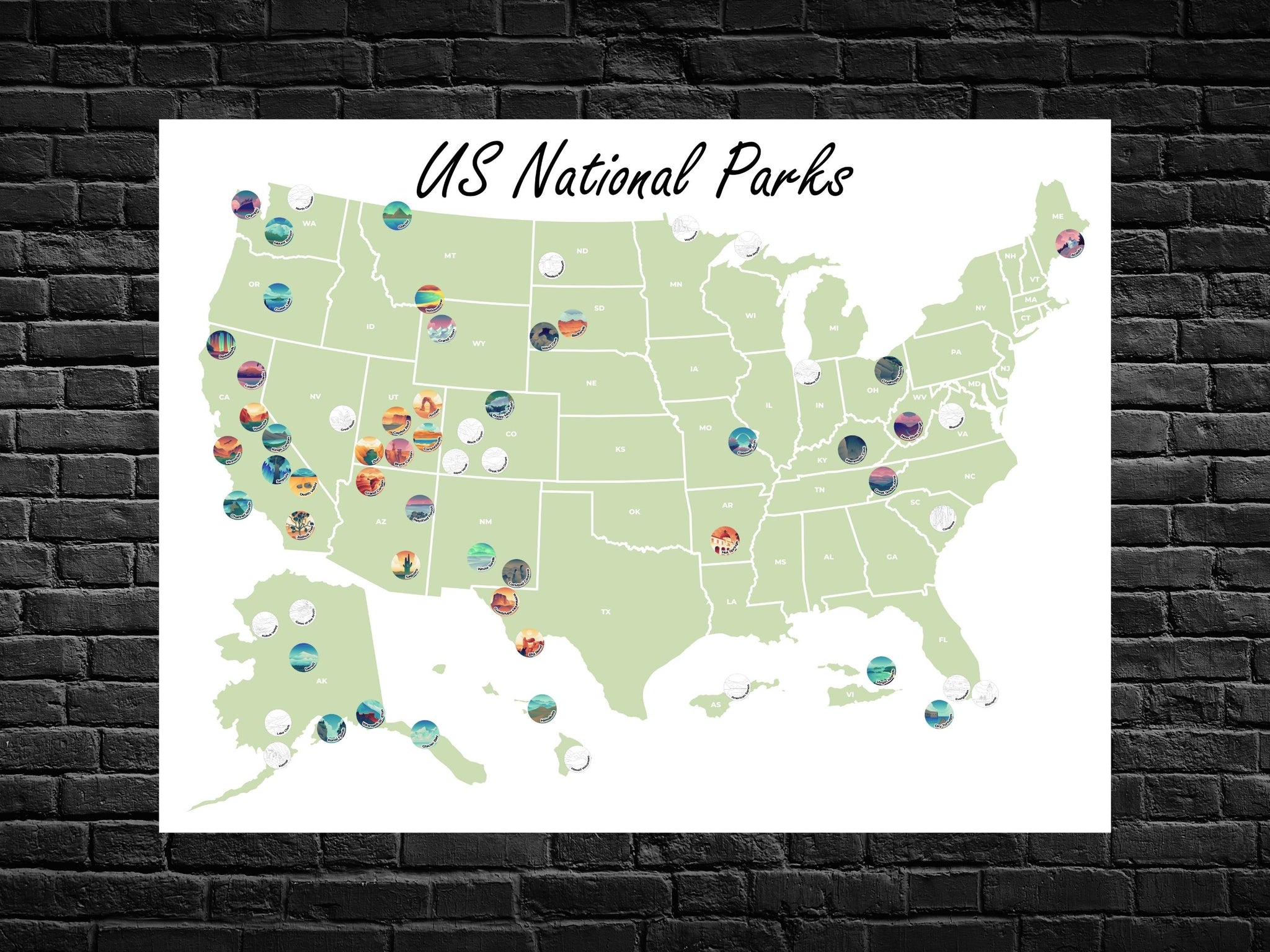 National Parks Map With Checklist with Updated 63 PARKS Etsy